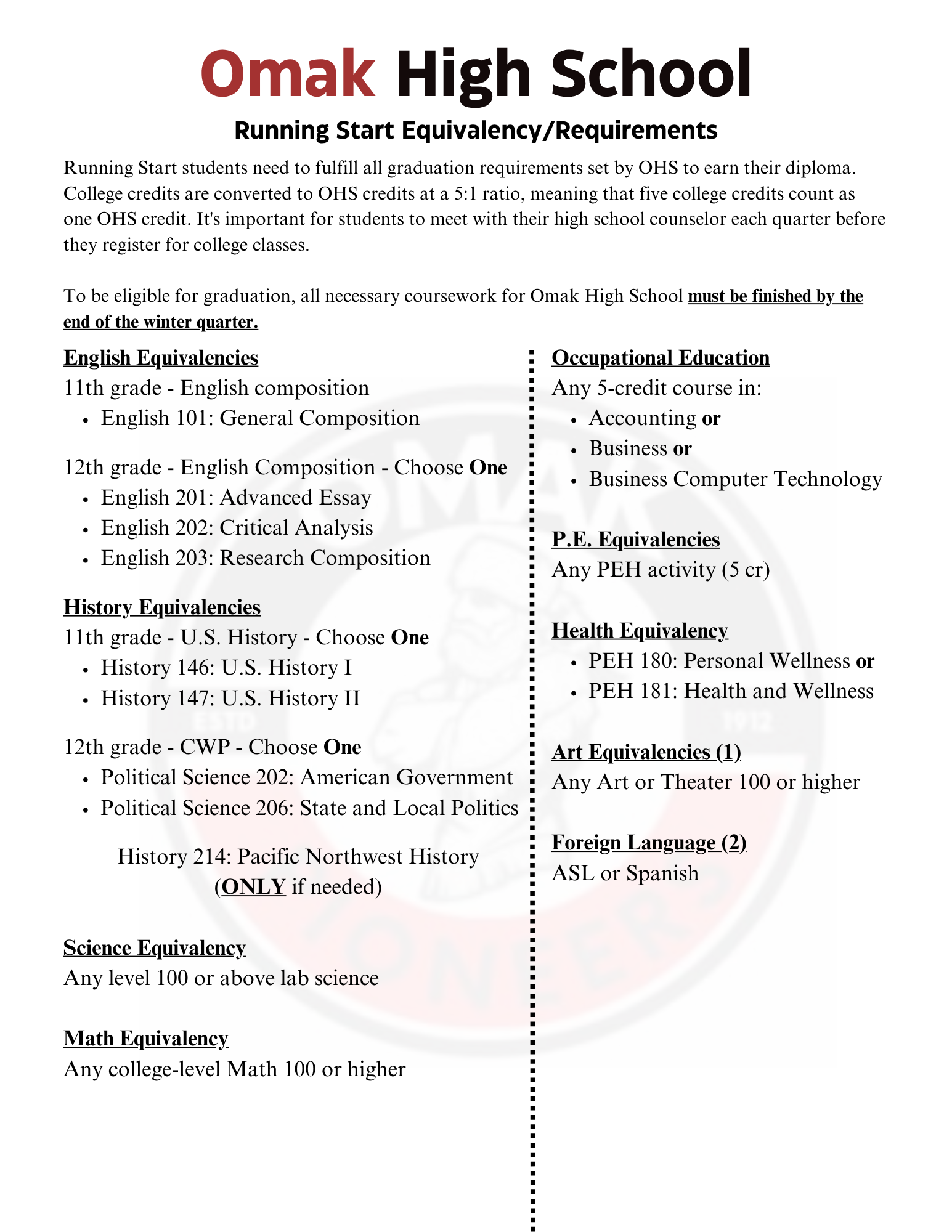 In preparation for creating a 2 year plan with your adviser, you can find degree worksheets and high school equivalencies below: