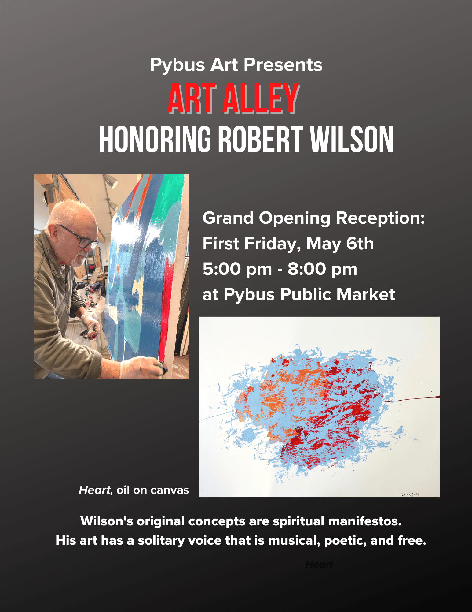 More information on the Pybus Art Alley can be found at www.pybuspublicmarket.org/robert-wilson-art-alley/.